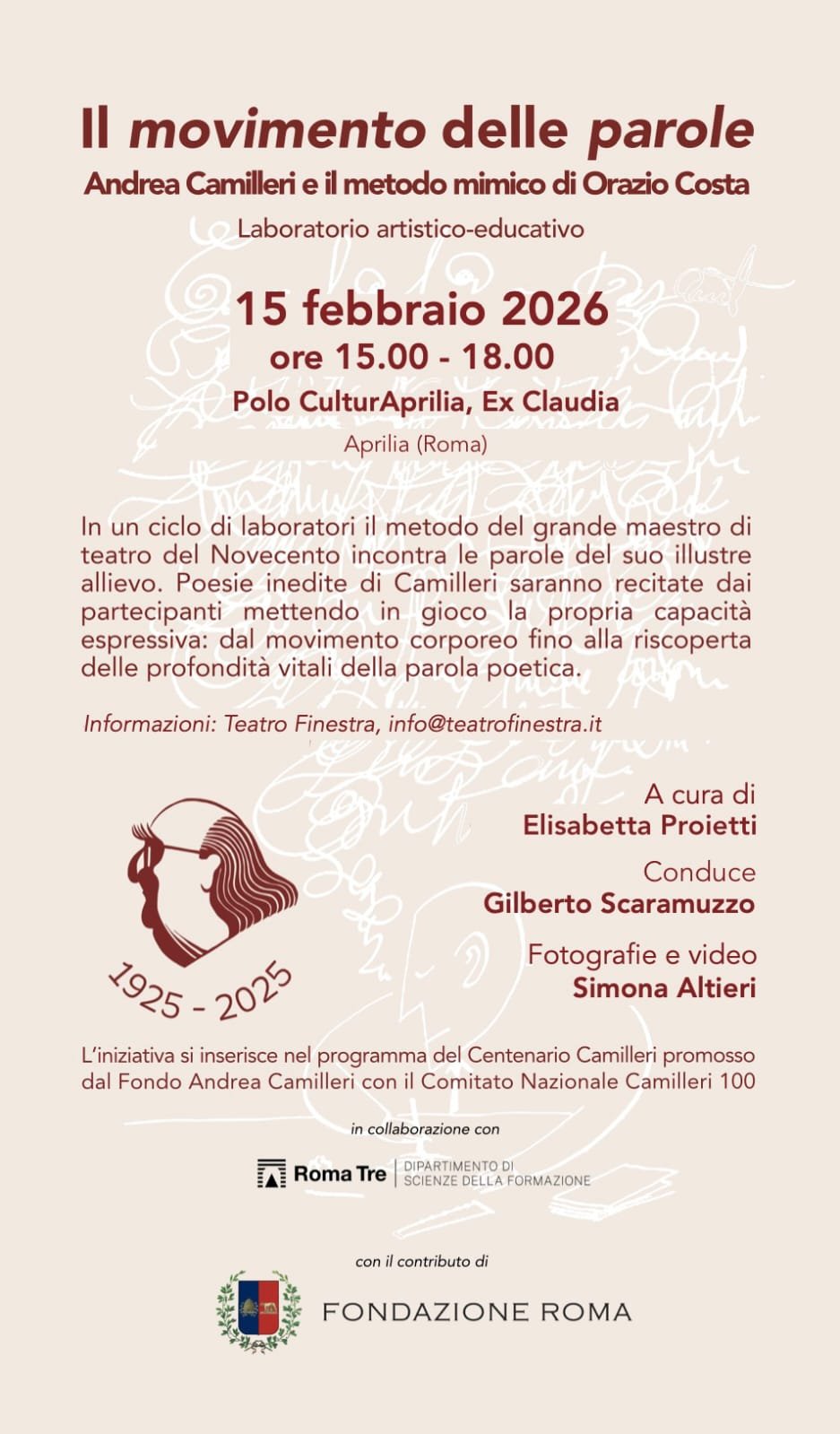Dopo l’appuntamento all’Istituto di Studi Pirandelliani di Roma, arriva al Polo CulturAprilia, Ex Claudia (Aprilia) “Il movimento delle parole. Andrea Camilleri e il metodo mimico di Orazio Costa”.