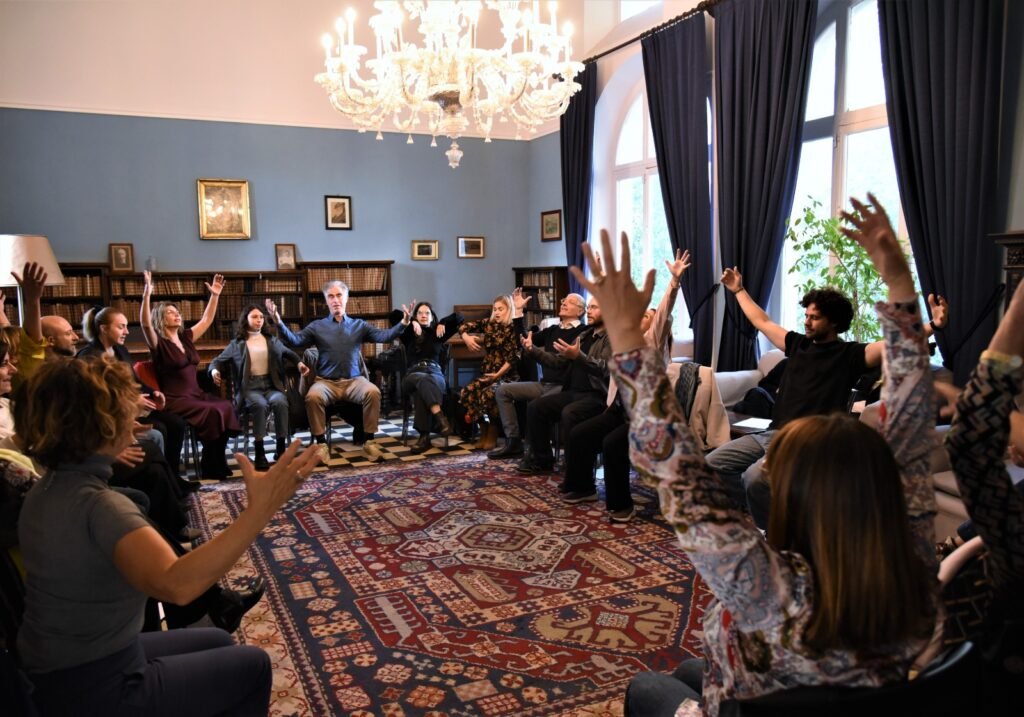 Il laboratorio è stato condotto da Gilberto Scaramuzzo, docente di Pedagogia dell’espressione all’Università Roma Tre e direttore di “Roma Tre Mimesis”, Compagnia di arti sceniche del Dipartimento di Scienze della formazione. La sfida per ognuno dei partecipanti era di mettere in gioco la propria capacità espressiva, partendo dal movimento corporeo fino alla riscoperta delle profondità vitali della parola poetica.