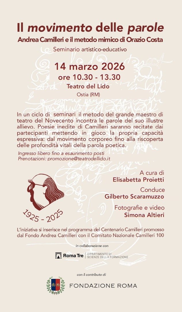 Nel centenario della nascita di Andrea Camilleri, il progetto “Il movimento delle parole. Andrea Camilleri e il metodo mimico di Orazio Costa” fa tappa al Teatro del Lido di Ostia (Roma).