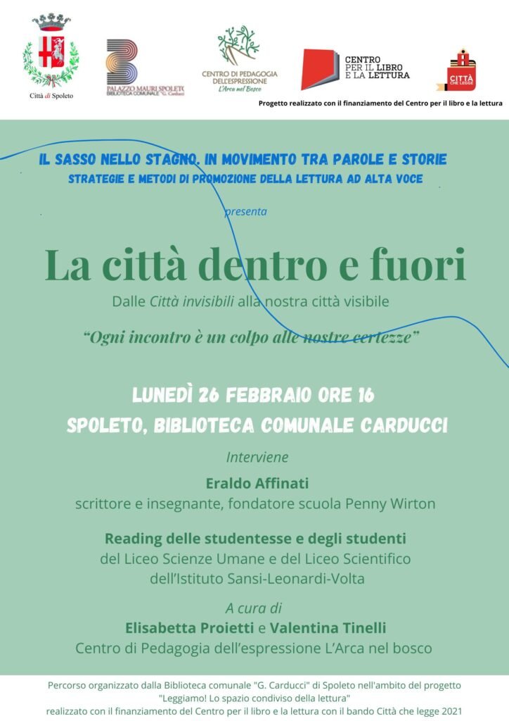 Italo Calvino con “La città invisibili” e la Costituzione italiana sono le guide principali per l’edizione 2023-2024 del progetto. I moduli si basano su modalità e tecniche della Pedagogia dell’espressione e della ricerca “Paideia mimesis”: centrale è la sperimentazione, quindi la scoperta e la progressiva consapevolezza che ne deriva, dei propri meccanismi espressivi, del rapporto tra parola e corporeità, delle potenzialità drammaturgiche della voce.