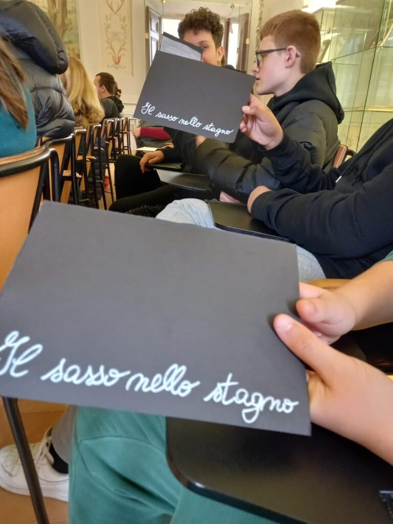 Il sasso nello stagno è un progetto di Pedagogia dell’espressione incentrato in particolare su metodi e strategie per la lettura espressiva e sulla responsabilità della parola. Il titolo incontra la metafora rodariana contenuta nella “Grammatica della fantasia”. Il progetto ha avuto una prima edizione nel 2020, in occasione dei 100 anni dalla nascita di Gianni Rodari (“Il sasso nello stagno. Leggere e inventare storie”). Le edizione successive hanno visto ampliare le adesioni delle scuole e moltiplicare le iniziative pubbliche in cui gli studenti propongono la lettura ad alta voce come pratica civica e di educazione poetica collettiva.