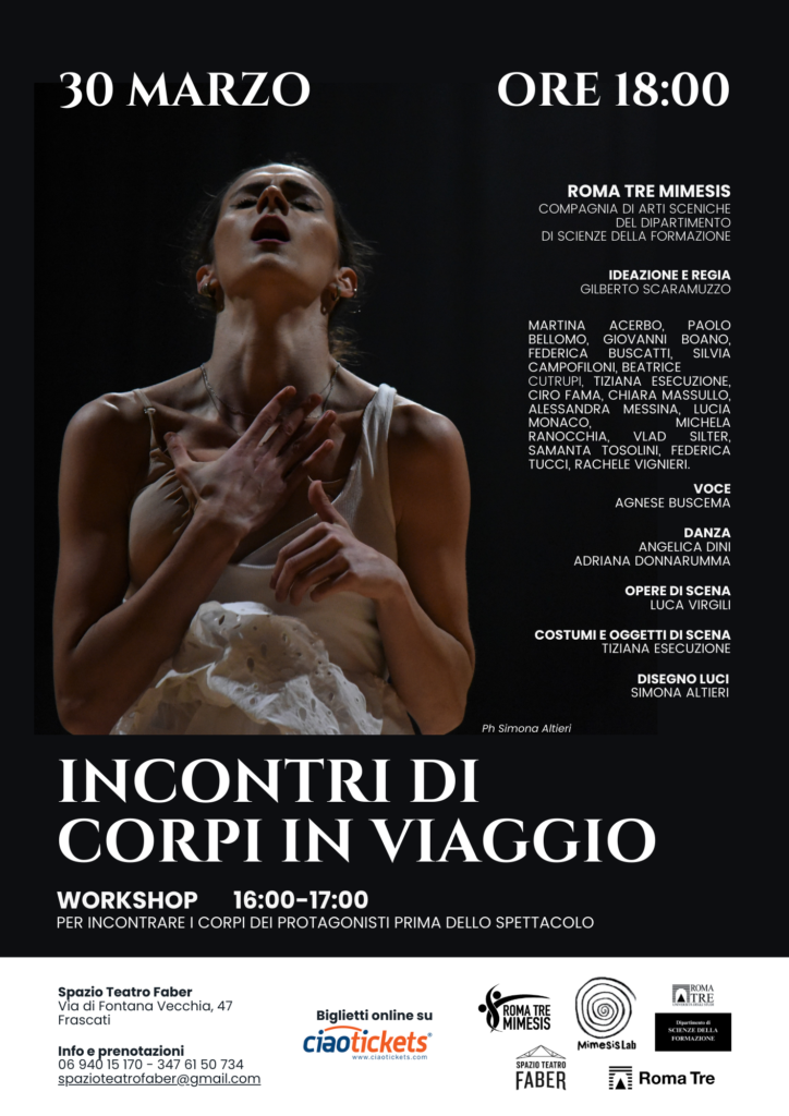 Lo spettacolo “Incontri di corpi in viaggio” in prima assoluta allo Spazio Teatro Faber di Frascati.
